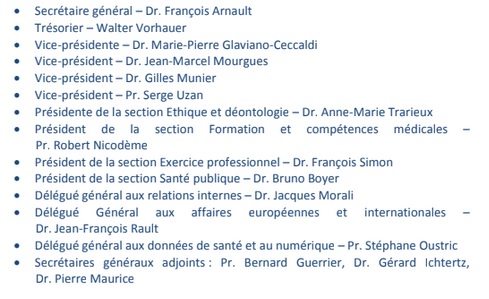 C'est un troisième mandat pour Patrick Bouet, le président du Conseil national de l'Ordre des médecins (Cnom). Le généraliste de Villemomble (Seine-Saint-Denis) a été largement réélu mercredi 26 juin en session plénière. Et de trois ! Le Dr Patrick Bouet est réélu pour un troisième mandat à la tête du Conseil national de l'Ordre des médecins (Cnom). Premier médecin généraliste à cette position, élu en 2013 puis réélu en 2016, il est généralement reconnu comme ayant impulsé une dynamique plus ouverte et progressiste à la vénérable institution. Ce sont les 56 membres élus par les conseillés départementaux de l'Ordre, auxquels s'ajoute un membre désigné par l'Académie de médecine (Pr Jean-Pierre Olié) et un autre par le Garde des Sceaux (Marcel Pochard), qui ont décidé de renouveler le président du Cnom à ses fonctione. Le vote, qui s'est déroulé mercredi 26 juin, a été sans appel : 51 votants ont opté pour la candidatature de Patrick Bouet. Dans les trois ans à venir, le généraliste de Villemomble (Seine-Saint-Denis) sera accompagné par un bureau renouvelé dont voici la composition.