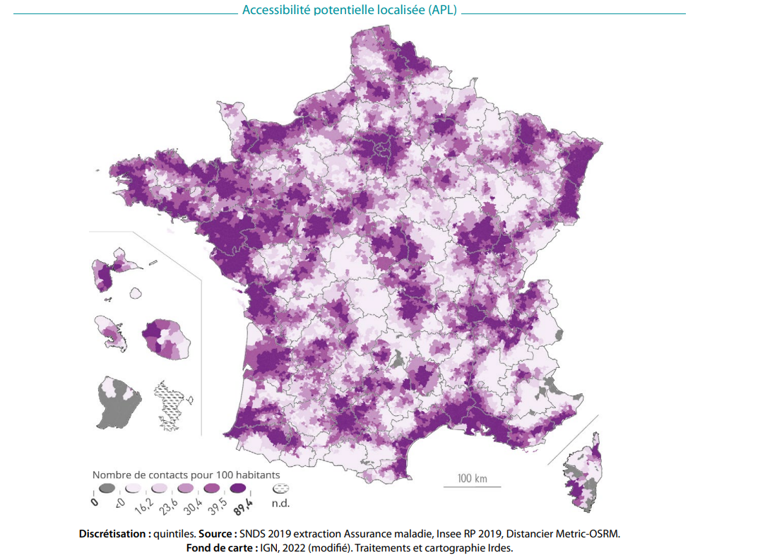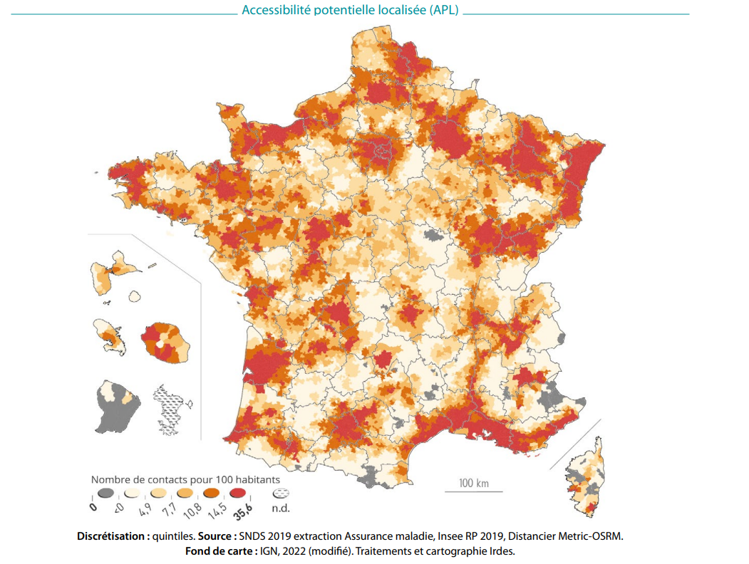 L'Irdes a calculé l'accessibilité potentielle localisée (APL) de trois spécialités médicales, révélant des disparités géographiques. Un constat que la FMF appelle à nuancer.