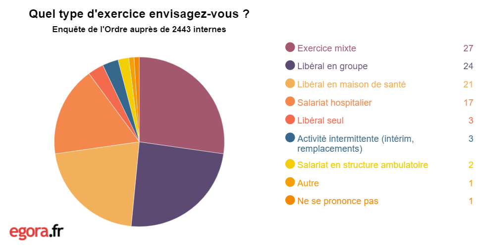 C'est sans doute le résultat le plus surprenant de cette enquête : contrairement à ce qu'avance Agnès Buzyn, 75 % des internes envisagent une activité libérale, quelle que soit sa forme. Seuls 19 % des répondants plébiscitent le salariat, dont 17 % à l'hôpital.