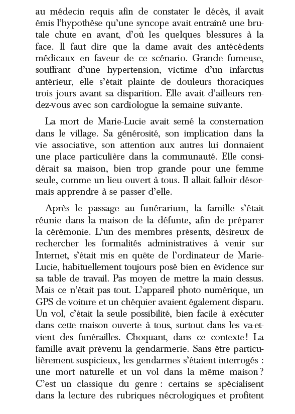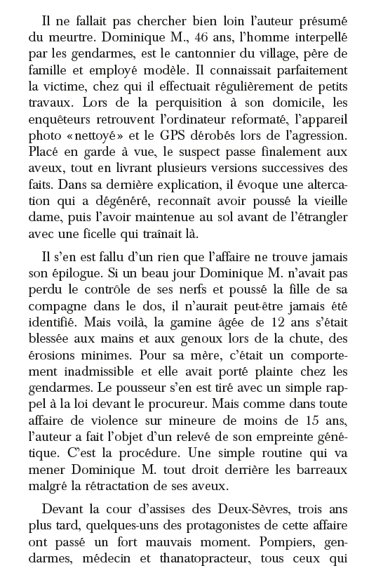 En trente ans d'exercice de la médecine légale, le Dr Michel Sapanet a été le témoin de toutes les violences humaines. Responsable de l'unité médico-légale du CHU de Poitiers, il a récemment publié le quatrième opus de ses fameuses chroniques. Voici l'histoire de Marie-Lucie, 75 ans, retrouvée sans vie, allongée face contre terre.