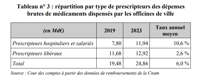 Une recommandation à laquelle le directeur général de la Cnam dit souscrire dans sa réponse au rapport. "Ce téléservice a par ailleurs vocation à être progressivement ouvert aux prescripteurs hospitaliers en 2027", annonce Thomas Fatôme, évoquant également l'enjeu de la "déprescription". La nouvelle convention permettra aux médecins traitants de coter, à partir du 1er janvier 2026, une consultation longue (60 euros) de "déprescription" pour les patients âgées hyperpolymédiqués.