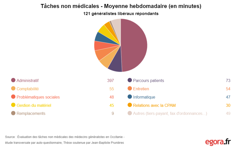 "Libérer du temps médical." C'est le nouveau mot d'ordre de la lutte contre les déserts médicaux. Alors que l'augmentation du numerus clausus ne produira ses effets que dans 10 ans, le gouvernement compte sur les transferts de compétences et sur les futurs assistants médicaux pour décharger les médecins d'actes à faible valeur médicale ajoutée. Mais combien de temps les généralistes pourront-ils réellement gagner ? Interne en médecine générale, Jean-Baptiste Prunières a mené l'enquête. Soutenue le 16 octobre, sa thèse* présente une étude inédite chiffrant la charge de travail non médicale des généralistes libéraux. Car ces tâches, particulièrement chronophages, freinent l'attractivité de l'exercice.