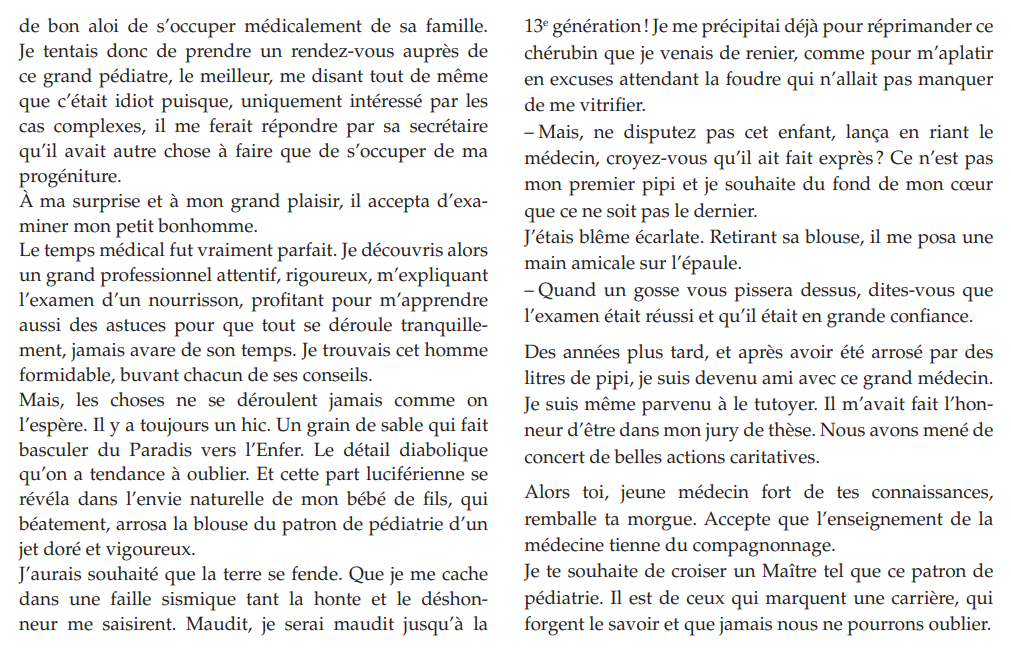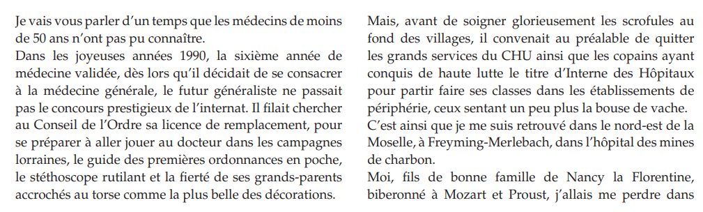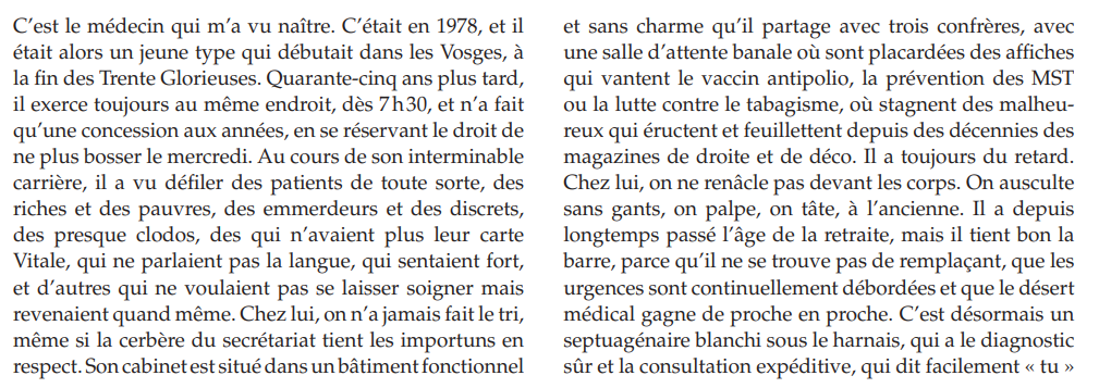 Texte rédigé par la Dre Alice Bergerac, médecin généraliste près de Dijon, auteure de deux recueils "Alors, qu’est-ce qui vous amène ?" et "Alors, comment ça va depuis la dernière fois ?"