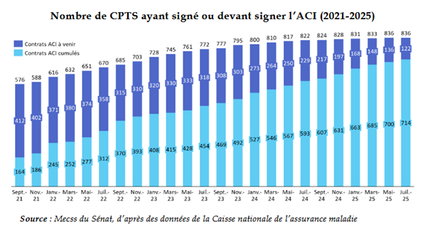 Car si les CPTS bénéficient, depuis 2019, "d’un soutien opérationnel et financier important des pouvoirs publics", leur "apport effectif" "n’a jamais été réellement mesuré au niveau national", déplorent les rapporteurs. Alors même que ces organisations territoriales ont connu une "forte" progression ces dernières années : "plus de 800 CPTS validées ou en cours de validation" en mai 2025, soit "700 signataires de l’ACI, 24 CPTS non signataires mais dont le projet de santé avait été validé par l’ARS et 85 disposant d’une lettre d’intention signée par l’ARS".