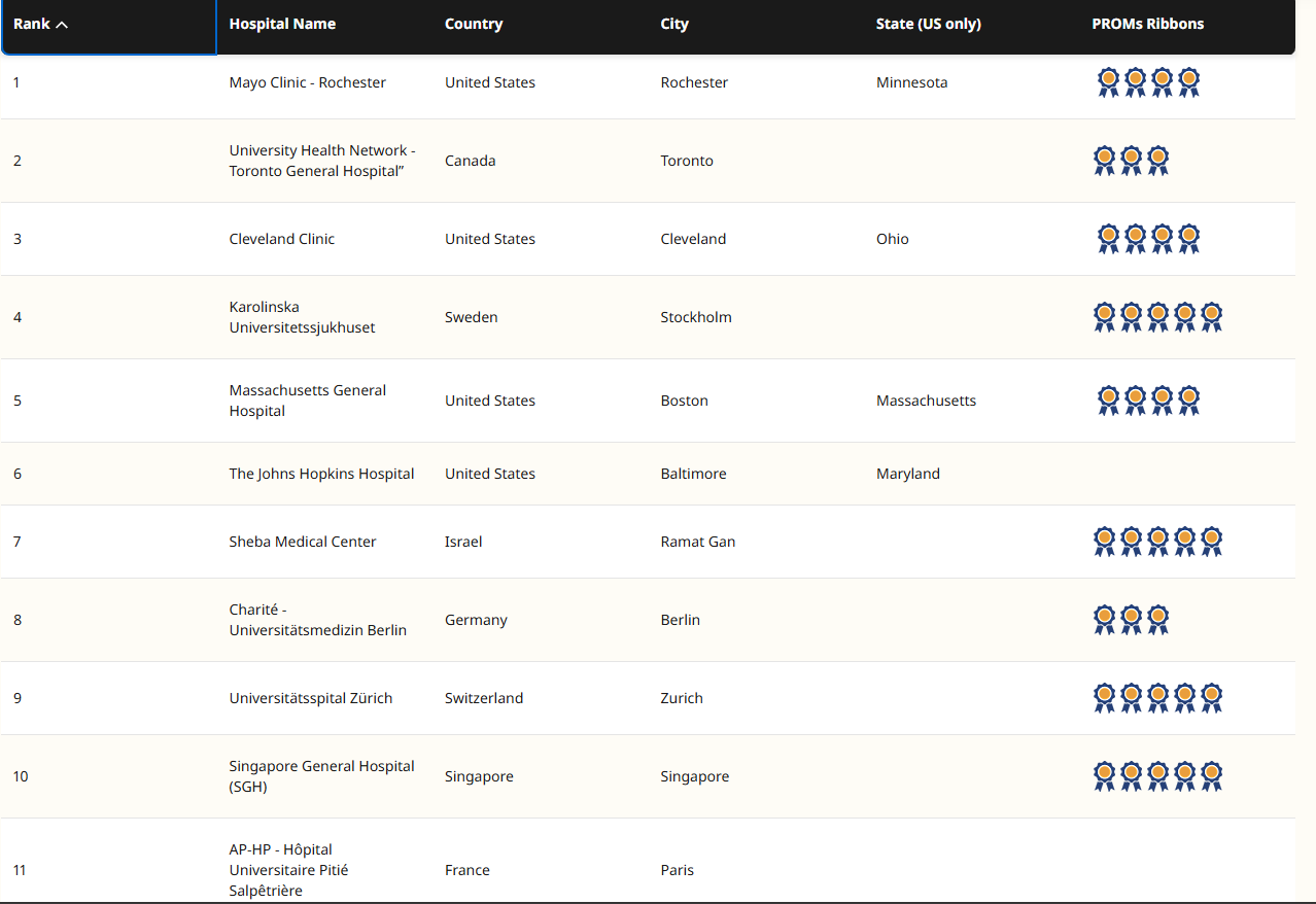 Il vient d’être rendu public. Le magazine américain Newsweek, avec la plateforme allemande Statista, a publié son classement annuel où il répertorie les meilleurs hôpitaux dans un panel de 32 pays (Les Philippines et la Turquie ont été ajoutés cette année). Au total, plus de 2 500 hôpitaux ont été évalués cette année.