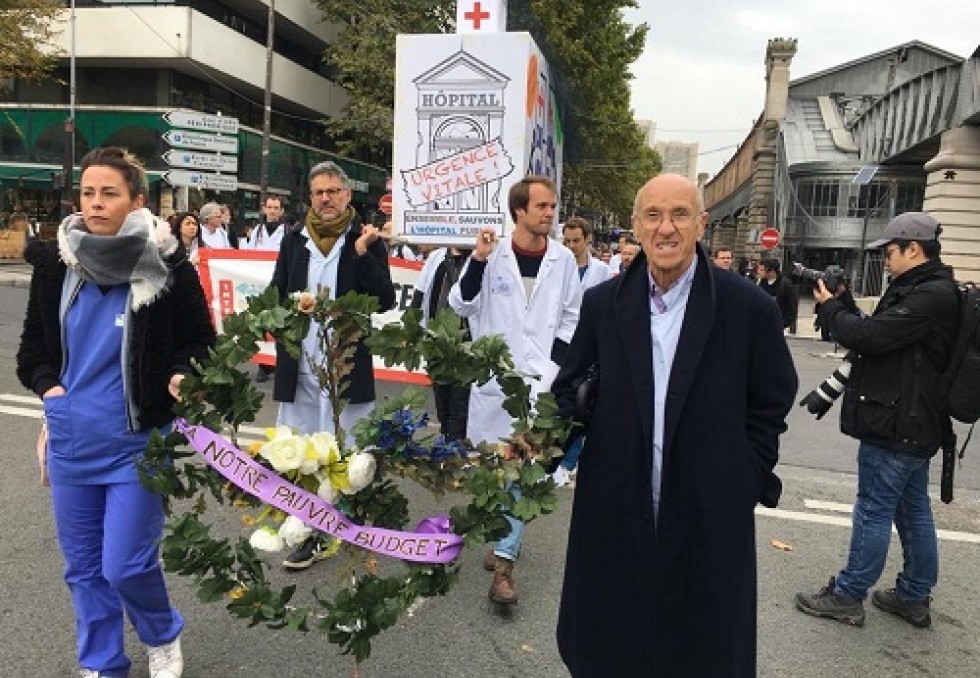 Interrogé par l'AFP, Antoine Pelissolo, chef du service de psychiatrie de l'hôpital Henri-Mondor à Créteil et membre du collectif Inter-Hôpitaux à l'initiative de cette action avec le collectif Inter-Urgences, indique qu'il s'agissait "de marquer le coup" avant le vote mardi, à l'Assemblée nationale, du budget de la Sécurité sociale pour 2020.