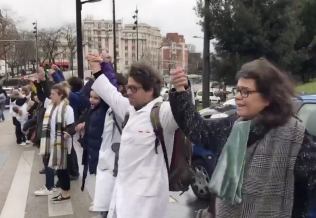 Le personnel d’un hôpital forme une chaîne humaine pour dénoncer les conditions de travail