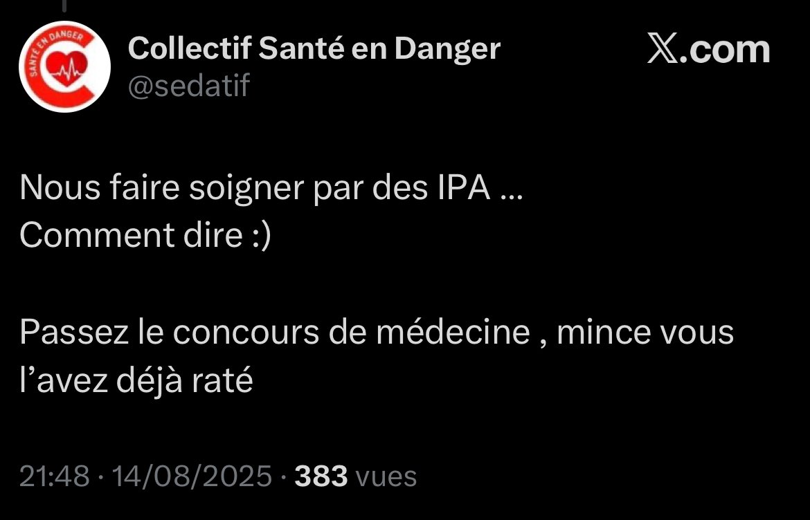 Les IPA, "des personnes incapables d'obtenir le concours de médecine"