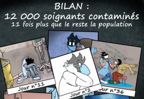 Pour Egora, le dessinateur et interne Vie de Carabin illustre un fait marquant de l’actualité. Cette semaine, c’est sur l'enquête de la fédération CGT de la santé révélant que 12.000 professionnels des établissements de santé, sociaux et médico-sociaux seraient contaminés en France, qu'il a décidé de revenir.