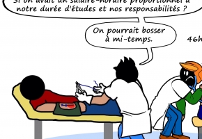 Pour Egora, le dessinateur Vie de Carabin illustre les faits marquants de l’actualité. Cette semaine, le médecin dessinateur réagit à la grève des internes, qui a eu lieu vendredi 18 et samedi 19 juin, pour le respect du temps de travail.