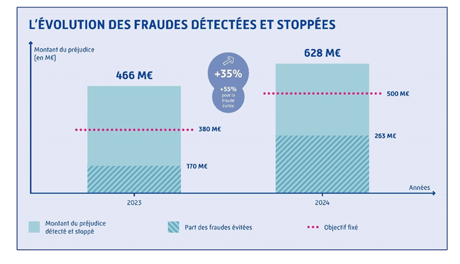 C'est nettement plus que l'objectif fixé dans la convention d'objectifs et de gestion (COG), qui était de 500 millions d'euros en 2024. Plus largement, depuis 2021, les résultats de la lutte contre les fraudes ont "quasiment triplé", précise-t-on. 263 millions d'euros de fraudes ont, en outre, pu être évitées l'an dernier (+55% par rapport à 2023) "avant même qu'elles ne puissent se produire" - et donc de causer un préjudice financier -, et ce grâce au renforcement des contrôles a priori et à la multiplication des actions de prévention, souligne l'Assurance maladie dans un communiqué de presse.