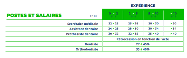 Enfin, le secteur dentaire se démarque par un marché de l'emploi "dynamique", "malgré une pénurie de praticiens, surtout en dehors des grandes villes", écrivent les auteurs de l'étude. Dans ce domaine, un dentiste est rémunéré à hauteur de 27 à 45% de rétrocession sur les actes qu'ils réalisent ; ces chiffres atteignent 35 à 40% de rétrocession pour un orthodontiste.