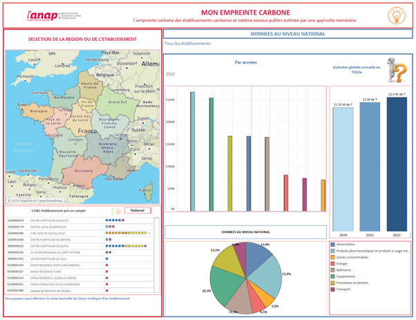 L’Agence nationale de la performance sanitaire et médico-sociale (Anap) a lancé, en juin dernier, l’outil de datavisualisation "Mon empreinte carbone", qui permet aux établissements de santé publics d’estimer leurs émissions de CO2, gratuitement chaque année.
