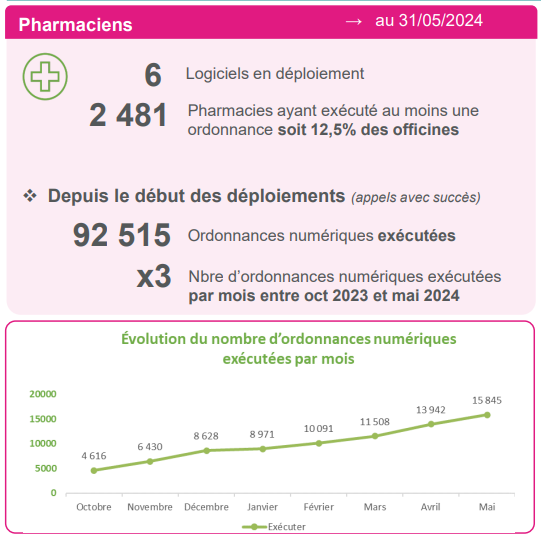 A l’instar de ces plateformes, un outil gagne du terrain en France, mais avec de réelles disparités entre les professions : l’ordonnance numérique. Si au 31 mai dernier, la moitié des médecins avaient un logiciel capable d’éditer ce type de prescription, seuls 20 000 (18%) en ont déjà réalisé une. Du côté des officines, seules 15% sont équipées de logiciels permettant de les lire et 12,5% en ont déjà réellement exécuté au moins une. Au total, plus de 22 millions d’ordonnances numériques ont été effectuées par les médecins, mais seulement 92 515 ont été exécutées par les pharmaciens. L’Assurance maladie prévoit de déployer progressivement ces ordonnances chez les médecins et de poursuivre les démarches d’accompagnement auprès des pharmaciens.
