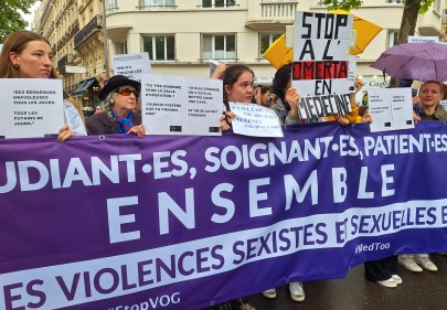 À ses côtés, de nombreuses patientes, et notamment Sonia Bisch, porte-parole du collectif Stop aux violences obstétricales et gynécologiques (VOG). "Nous sommes solidaires des professionnelles de santé et des étudiantes qui dénoncent des violences sexistes et sexuelles, indique-t-elle. Parce qu'on sait qu'un agresseur ne sera jamais un bon médecin." Où qu'elles se déroulent, ces VSS "restent impunies". "Il y a une inversion de la culpabilité, on écrase la parole des victimes", dénonce la militante, qui a notamment révélé l'affaire du Pr Daraï, spécialiste de l'endométriose à l'hôpital Tenon (AP-HP), mis en examen pour violences volontaires sur des patientes. "Il est toujours en poste !"