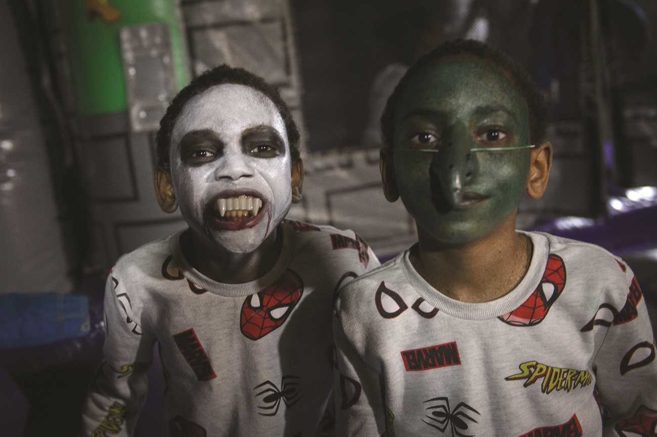 Ce jeudi débute par un atelier photo et des olympiades, avec Puissance 3 et shifumi géants. D’abord réservés, les jeunes se lâchent peu à peu, comme Abdessalem, 18 ans, ici "en confiance". Les joyeusetés continuent : goûter de 25e anniversaire de l’association, puis, une fois le soleil couché, des jeux gonflables, peau à l’air libre. Et, enfin, une soirée Halloween, avec un luxe pour les XP : revêtir masque et costume de leur choix.