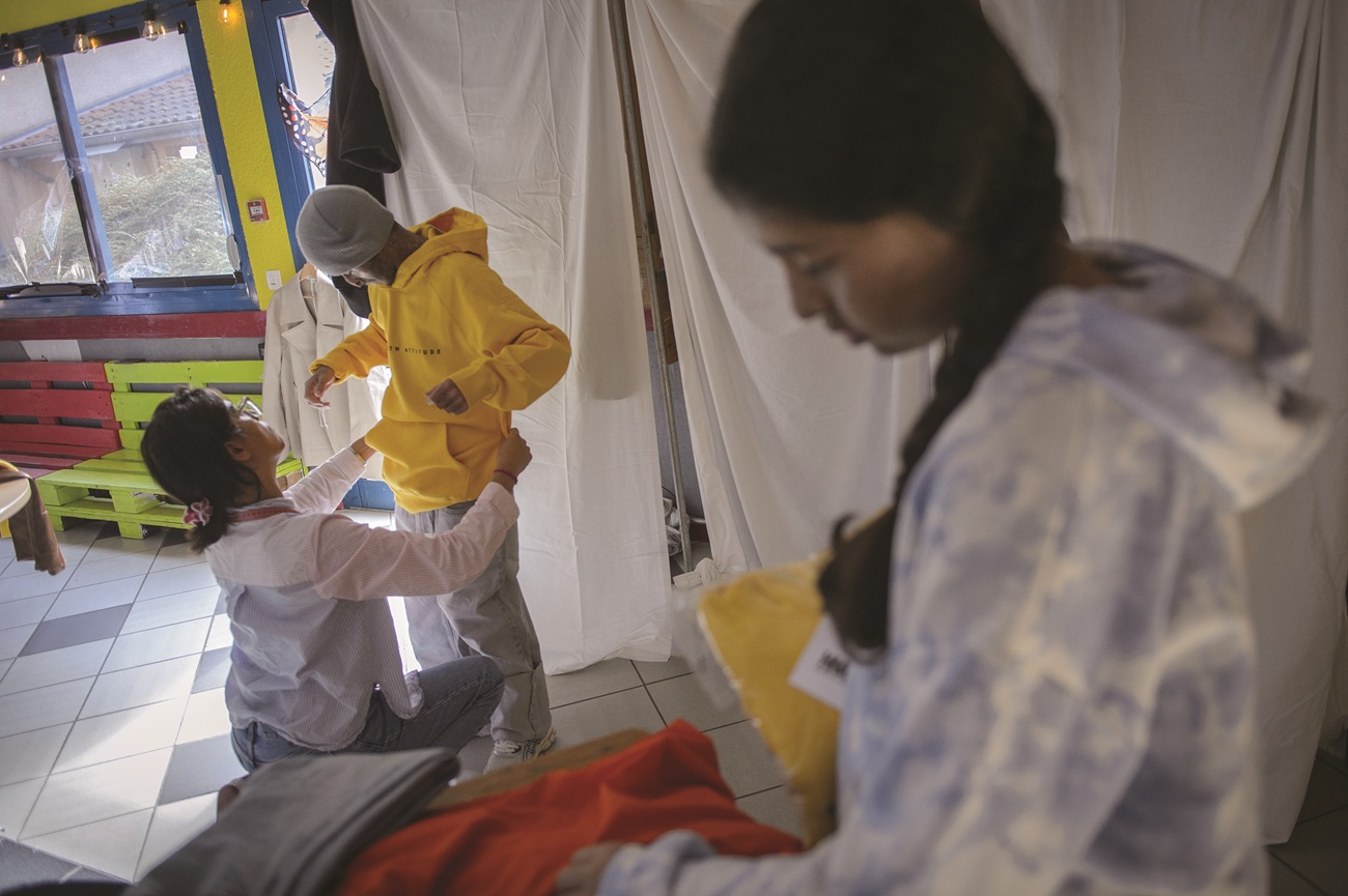 L’hôpital Necker-Enfants malades y a aussi organisé son atelier Balance ton style, une séance de shopping pour ados et jeunes adultes, rendue possible grâce à des dons de marques. L’occasion de disséquer leurs critères de choix, de rappeler que leur identité ne se résume pas à la maladie, de voir comment ils testent les vêtements, de balayer des idées reçues sur la photoprotection. Si, au départ, ils se tournent automatiquement vers du noir, ils s’ouvrent petit à petit à autre chose, encouragés par les amis. Les objectifs, explique Hélène Dufresne, cheffe de projets socio-éducatifs, sont d’"améliorer l’estime de soi, très altérée dans les maladies visibles" et de "favoriser le lien entre pairs". Pendant ce temps, les adultes échangent. Et les plus petits, comme Balthazar, petit frère d’Olympe et non XP, font des cupcakes.