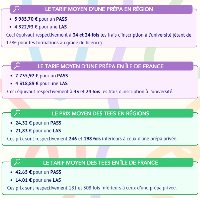 "Solidement implantées dans le paysage de la première année des études de santé", les prépas privées "ont su tirer parti de l'angoisse des étudiants" aspirants à intégrer les filières MMOPK et "du manque de soutien offert par certaines universités pour s'imposer dans cet écosystème", accusent les fédérations étudiantes. Pire, "en se positionnant comme ressource 'indispensable', celles-ci ont vu leur influence croître, tout comme leurs tarifs, avec une augmentation de +9.50% sur une année de Pass en régions" (voir ci-dessous), pointent-elles.