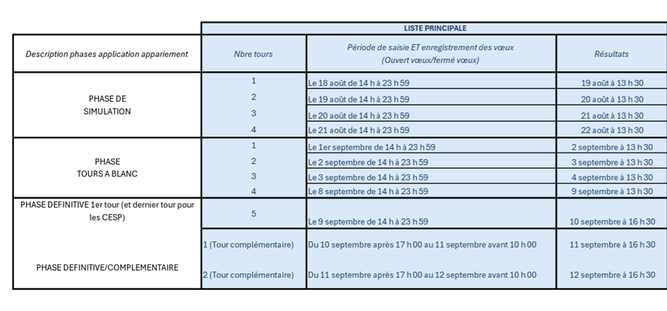 Le 9 septembre aura lieu la phase d'affectation définitive, à l'issue de laquelle les étudiants obtiendront une affectation pour l'internat sur un poste (spécialité et subdivision). Une phase complémentaire sera ouverte le 10 septembre pour les étudiants non affectés lors de la phase définitive. Pour cette étape complémentaire, il n'y aura pas de tour à blanc. Cette étape concerne uniquement les étudiants de la liste principale. "Il n'y a pas de tour complémentaire pour les étudiants ayant signé un CESP*", prévient le CNG.