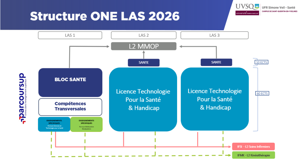 Avec le modèle "One LAS", "notre objectif est de préparer les jeunes à s’insérer professionnellement dans le monde de la santé", explique le Pr Loïc Josseran, à la tête de l'UVSQ, cité dans le communiqué. "Tous ne deviendront pas professionnels de santé, mais ils auront une licence qui ouvrira vers des formations qui leur permettront d’évoluer dans le monde de la santé et d’exercer les métiers de la santé de demain."