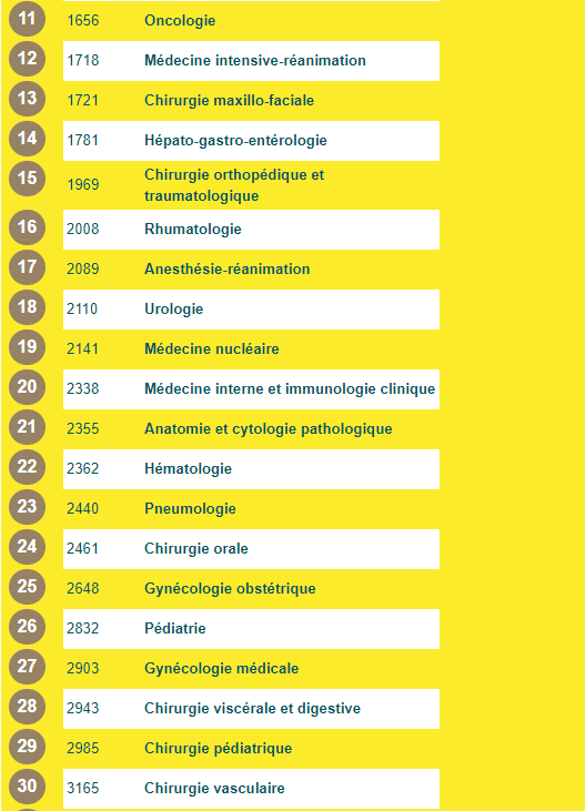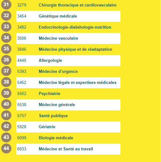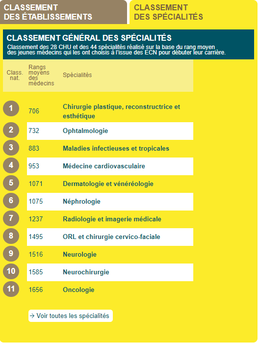 ... Voir le calssement des spécialités >>>