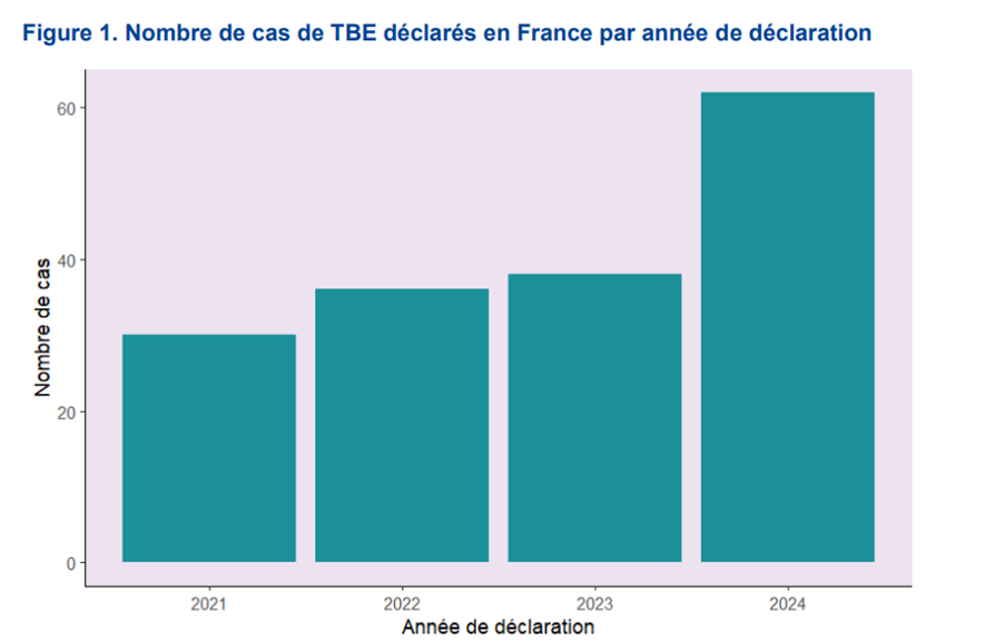 En 2024, le nombre de cas d'infections par le virus de l'encéphalite à tiques (TBE) a presque doublé par rapport au nombre de cas rapportés chaque année complète depuis l'inscription de la maladie sur la liste des maladies à déclaration obligatoire, en 2021.